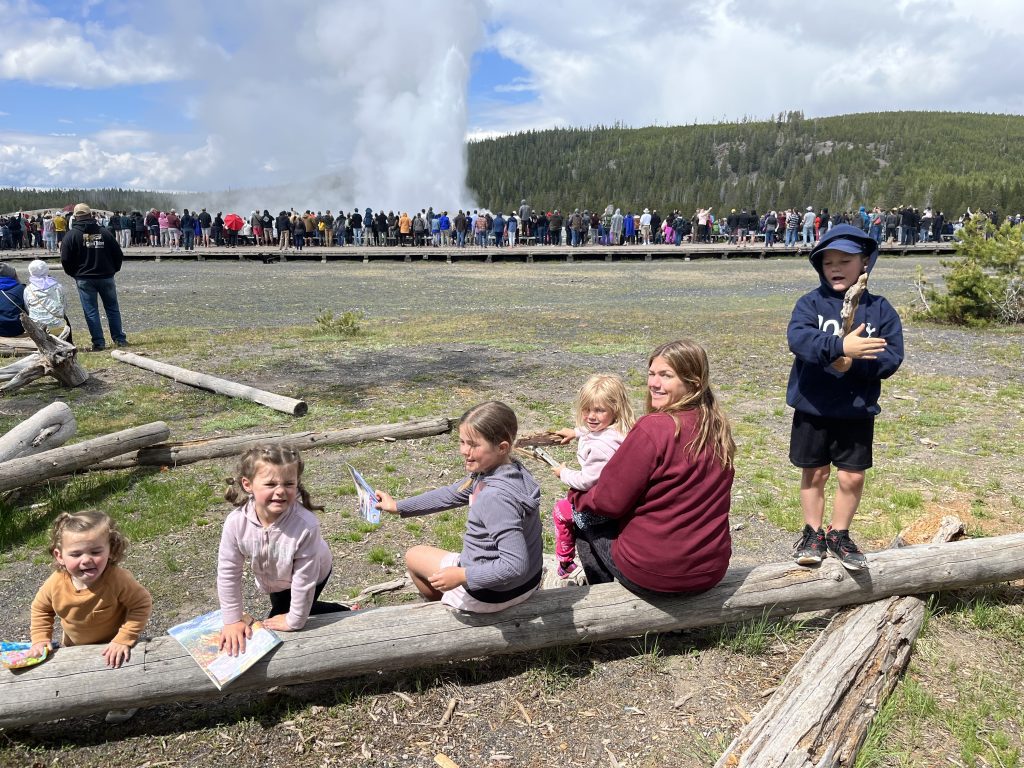 My favorite part of experiencing Old Faithful with kids is counting down with them and trying to guess when the geyser is going to blow. Sometimes even crowds around us will join in, and it always gives us and the kids a good laugh. We usually end up going 10 down to 1 five or six times before it eventually goes off. We cheer and laugh and make it fun as we watch this impressive geyser.